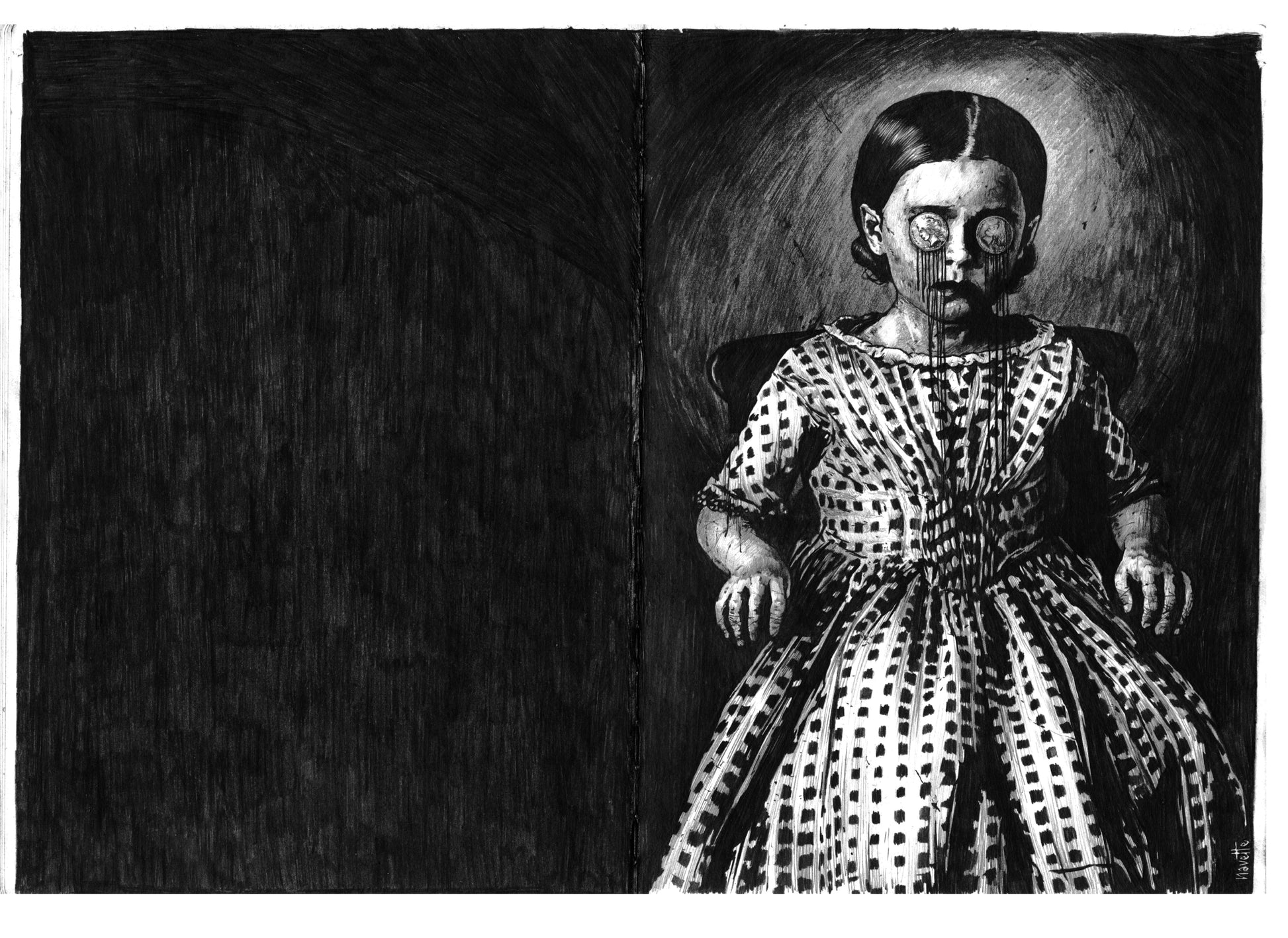 Kleines Mädchen mit Münzen / Risograph von Jean-Luc Navette