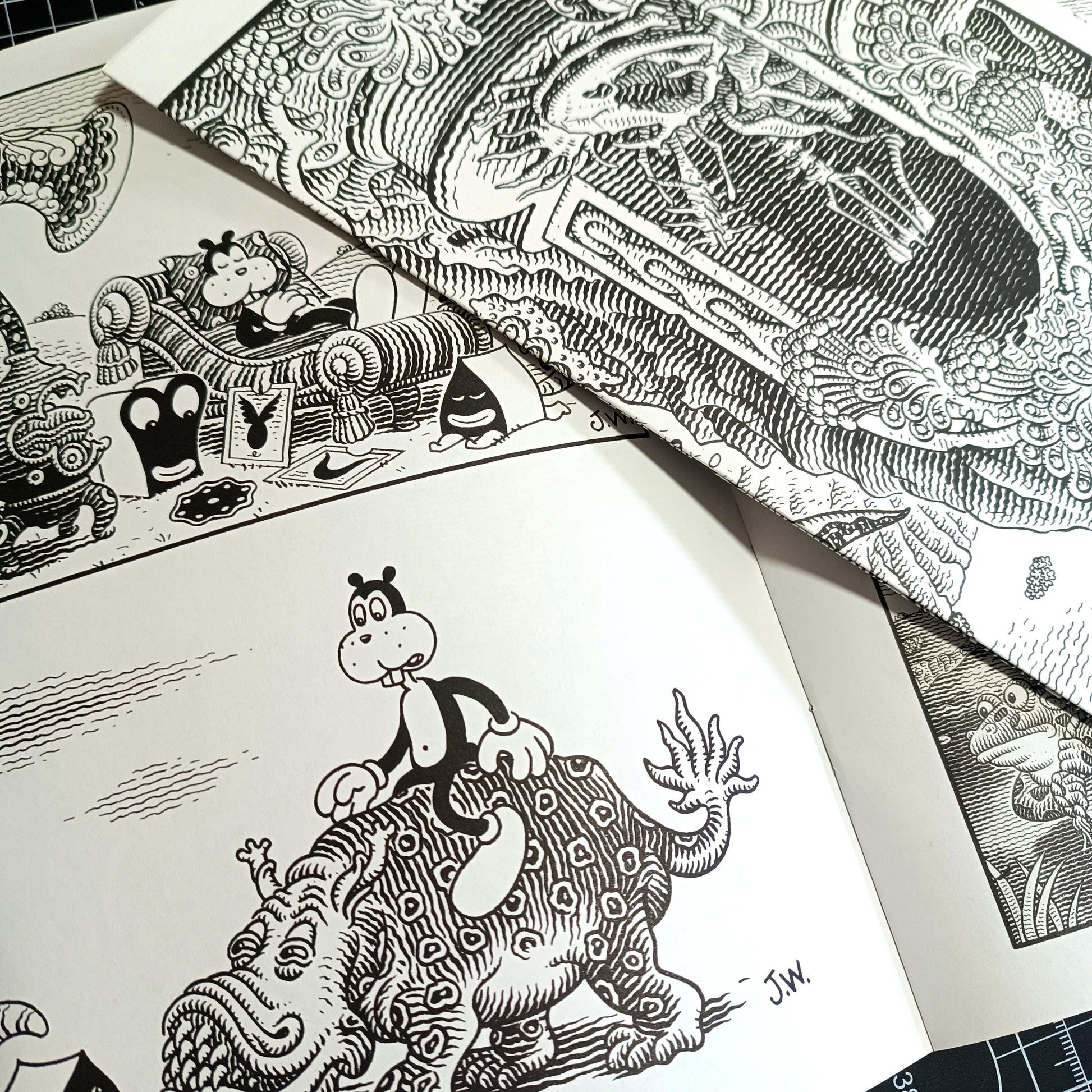 „The Art of Jim Woodring“ bietet einen seltenen Einblick in seine Fantasie: Zeichnungen, Gemälde und Visionen aus einem der persönlichsten Universen, die je in Comics geschaffen wurden.