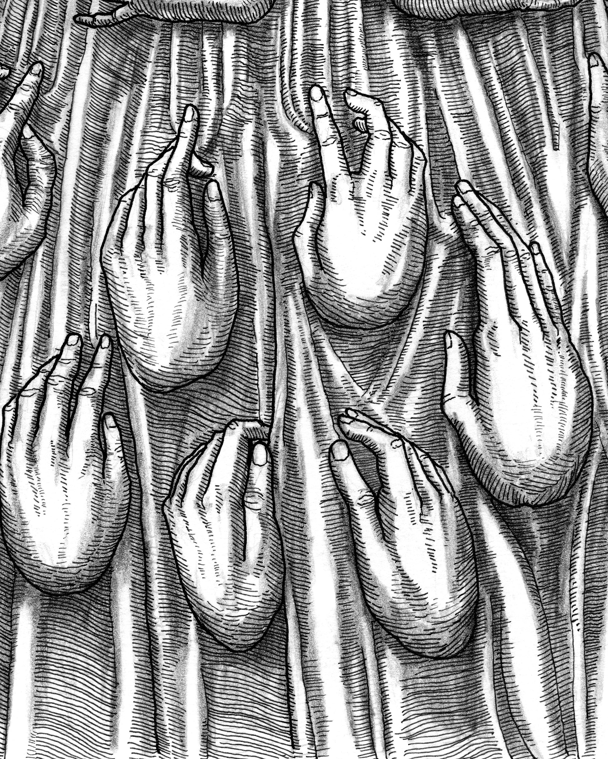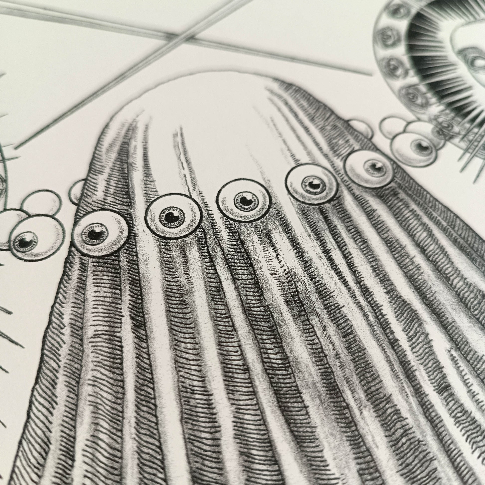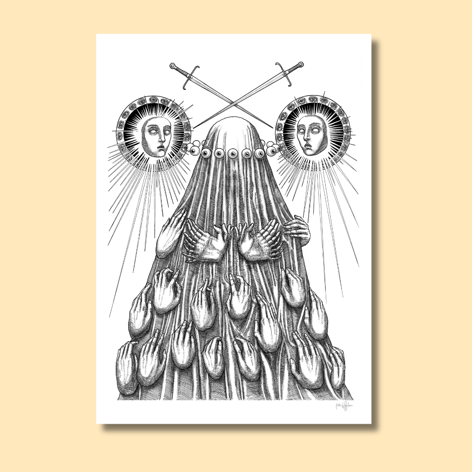 - Technique: Monochrome black risograph