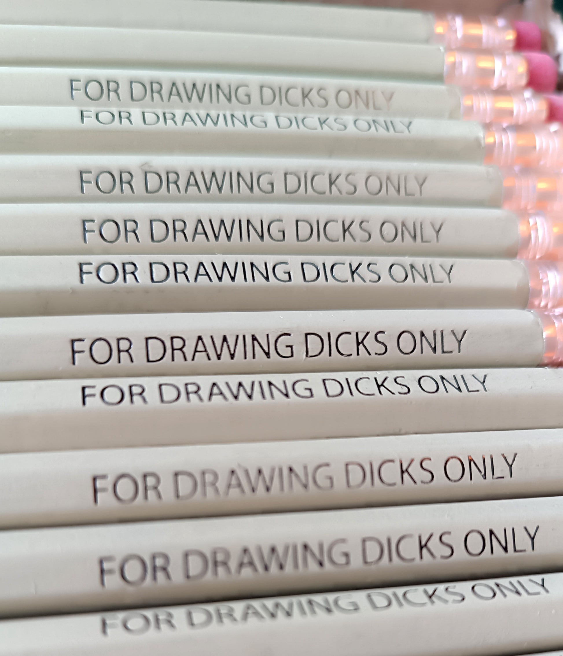 Superb hexagonal cream pencil + eraser, with "FOR DRAWING DICKS ONLY" pad printing to give as a gift or for yourself!