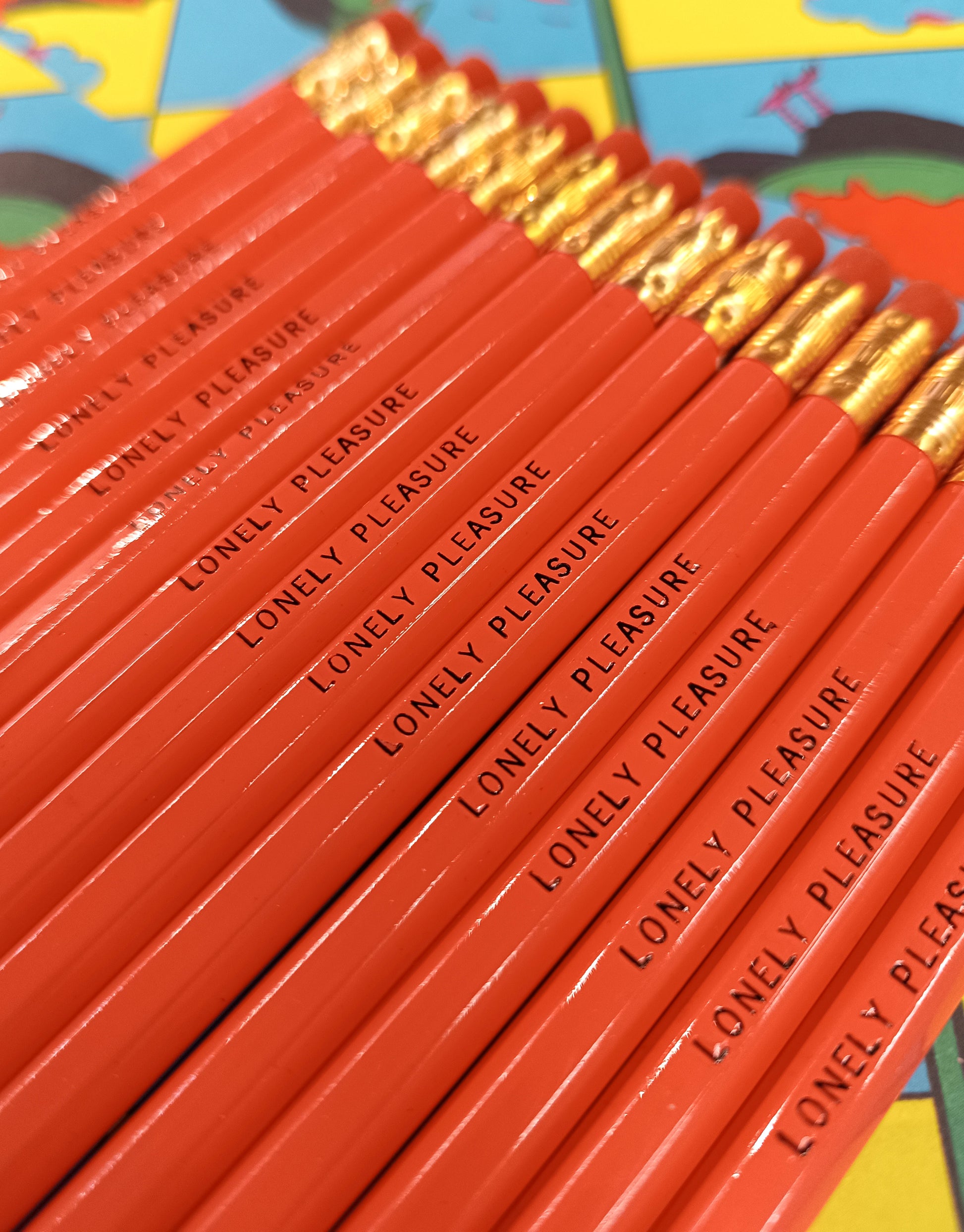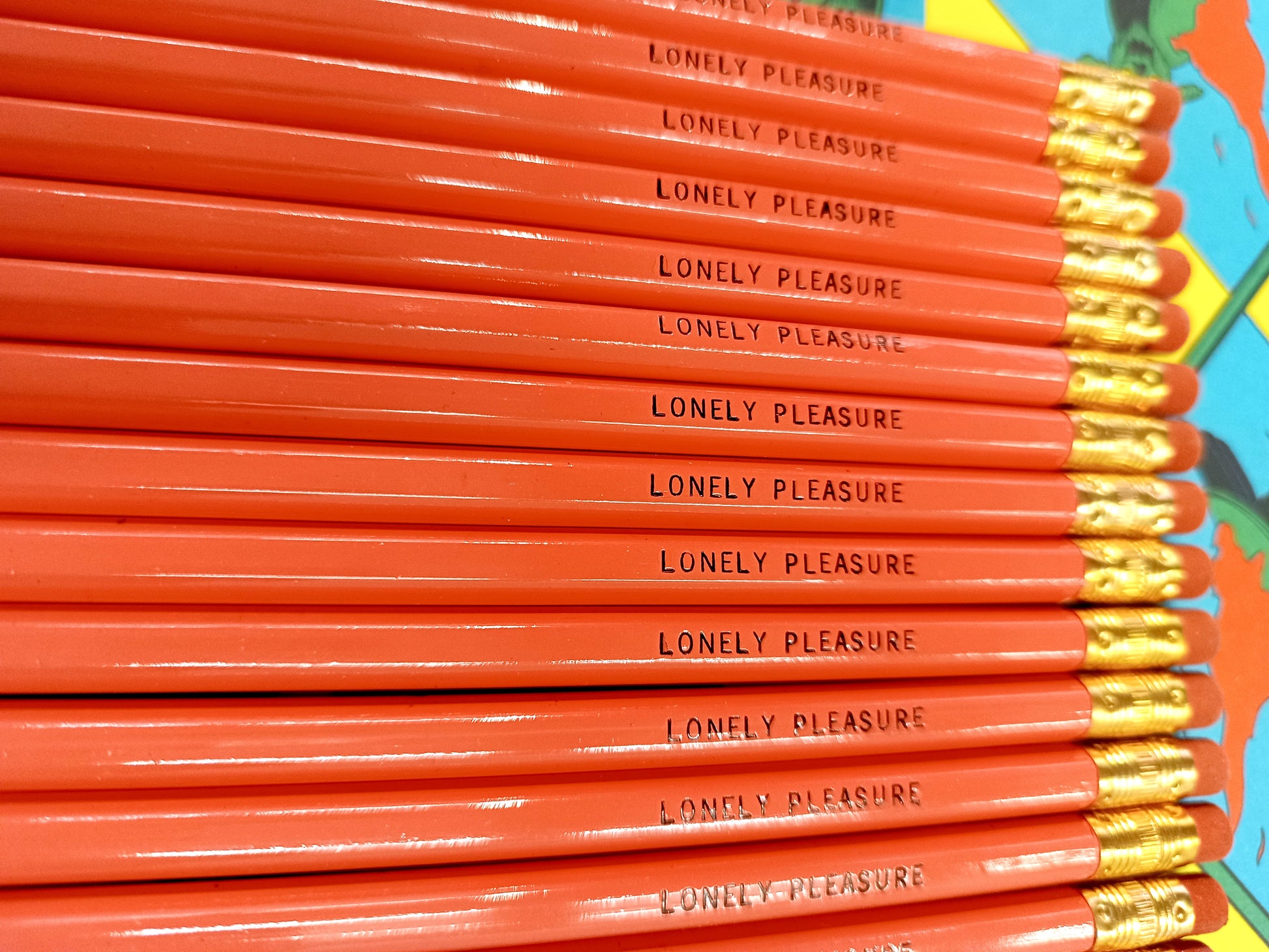 Superb pink hexagonal pencil + eraser, with "LONELY PLEASURE" pad printing to give as a gift or for yourself!