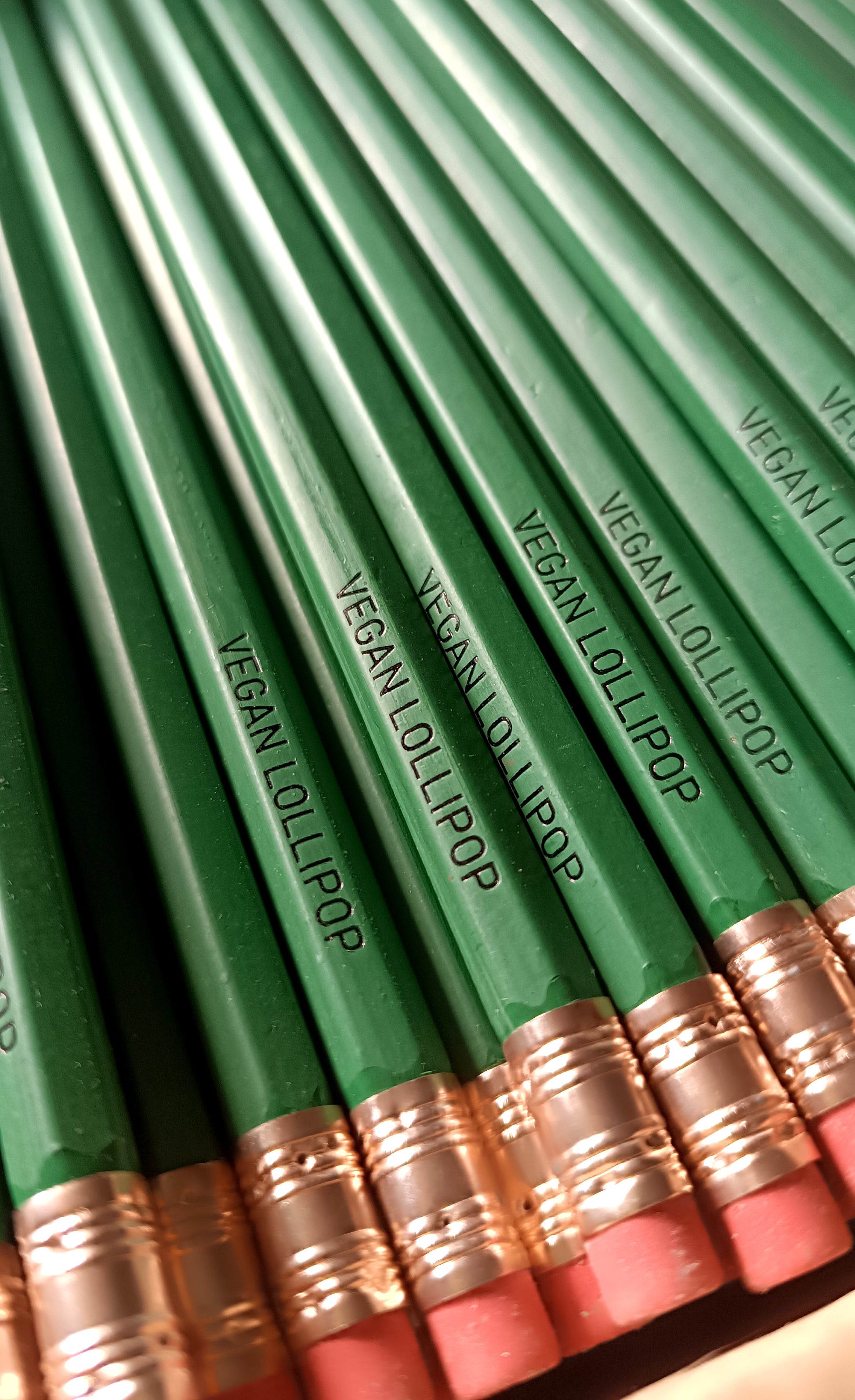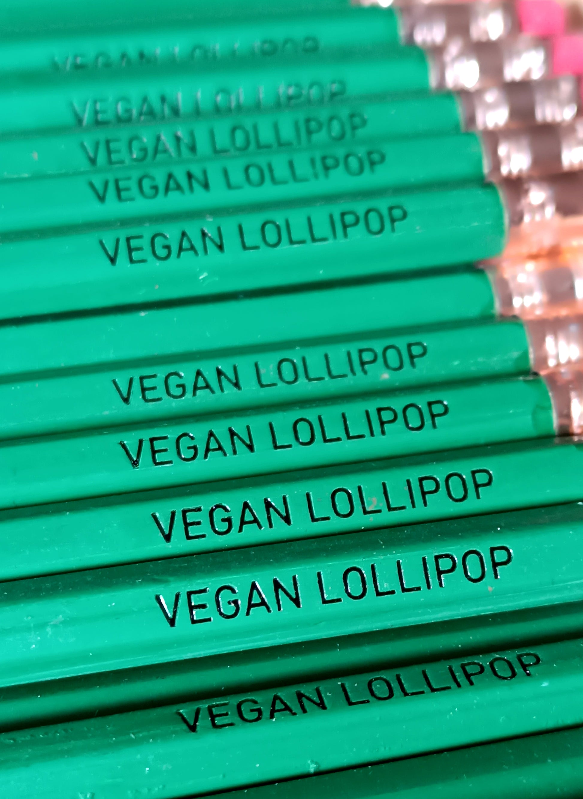 Superb fir green hexagonal pencil + eraser, with "VEGAN LOLLIPOP" pad printing to give as a gift or for yourself!