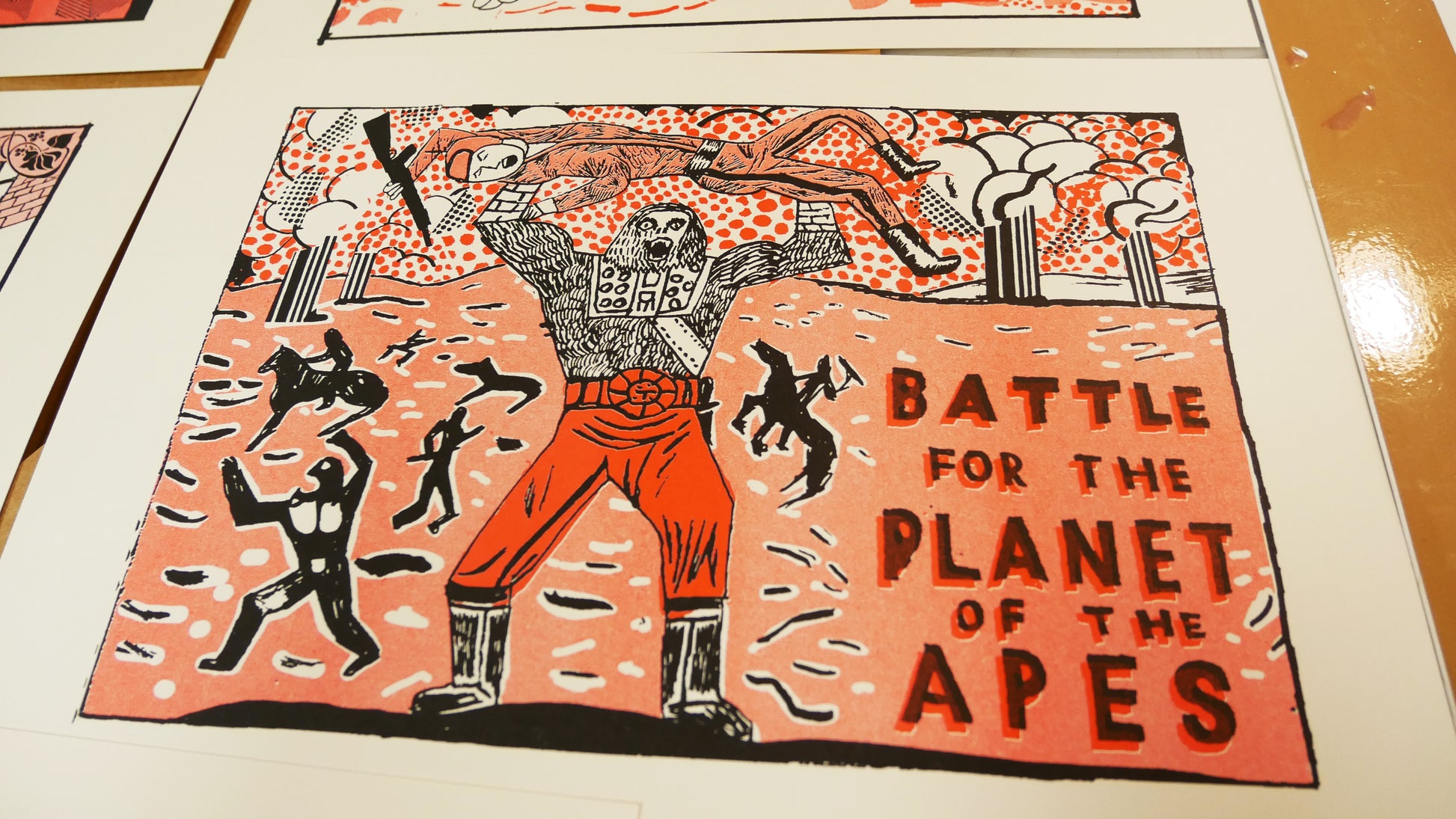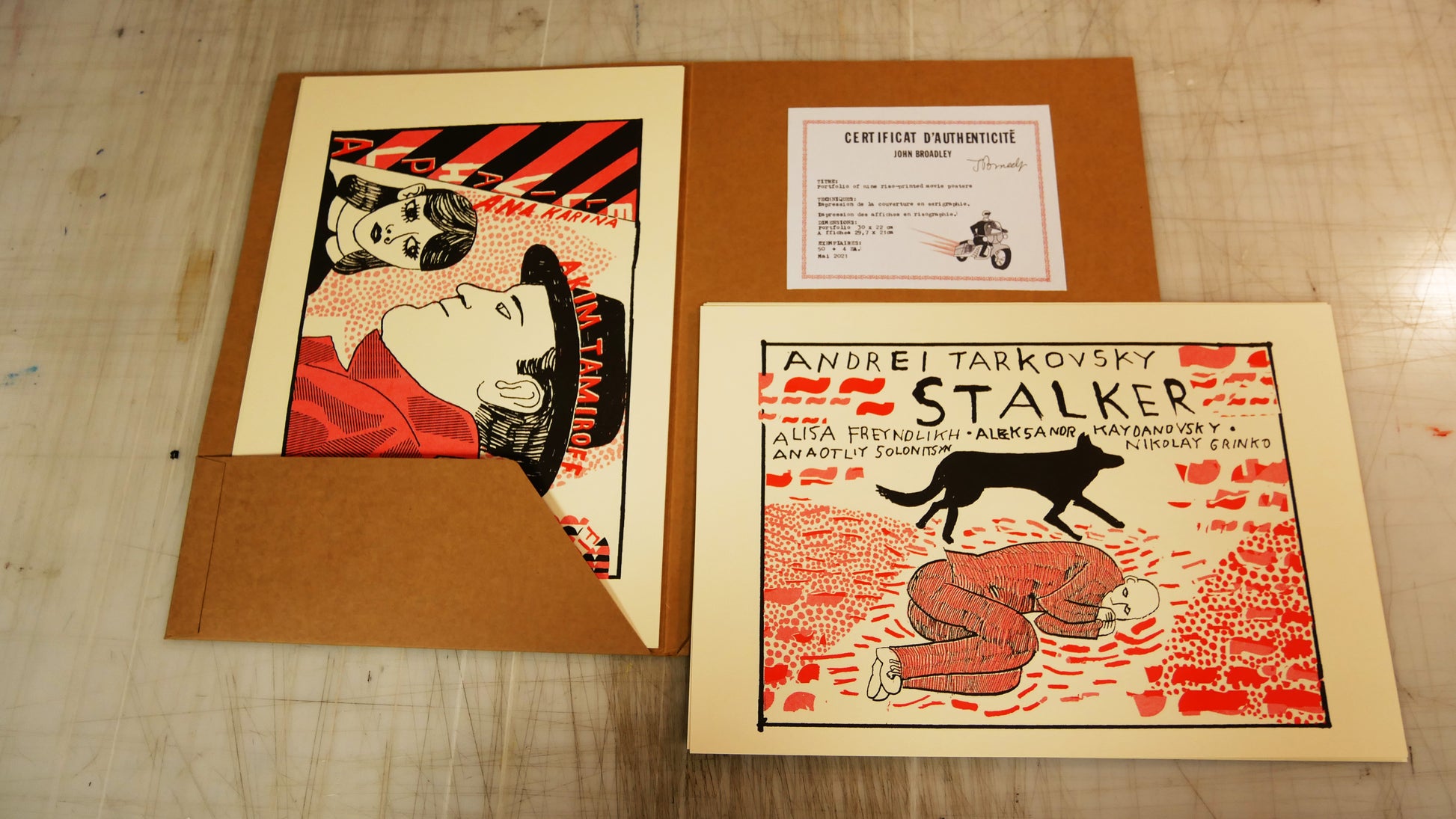 The kraft cardboard sleeve is hand screen printed / 4 colors.