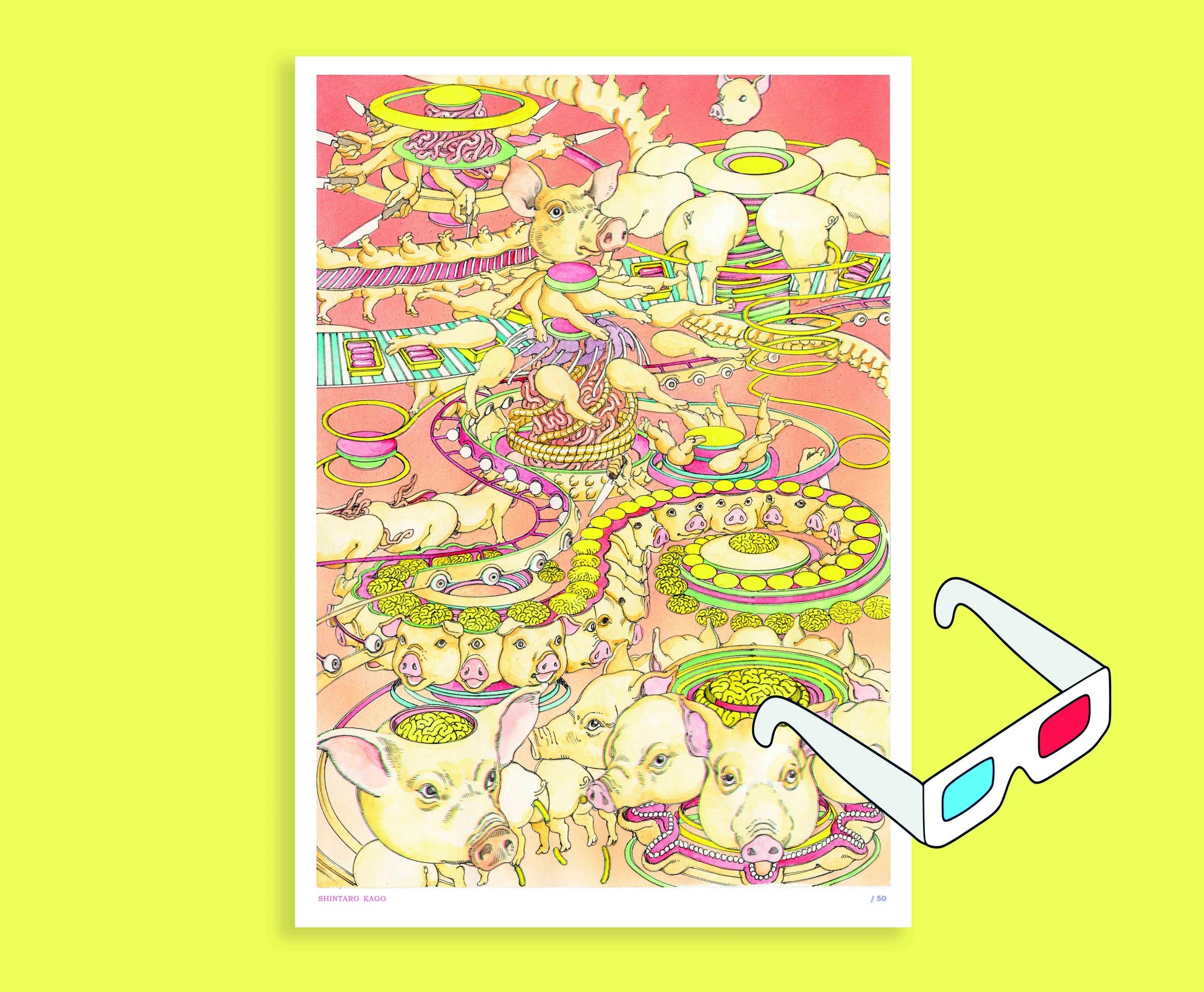 PIGS MACHINE, 3D risograph by Japanese artist Shintaro Kago!