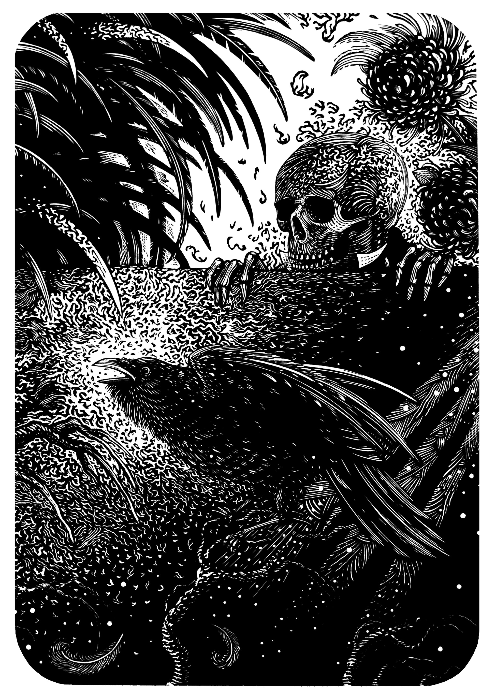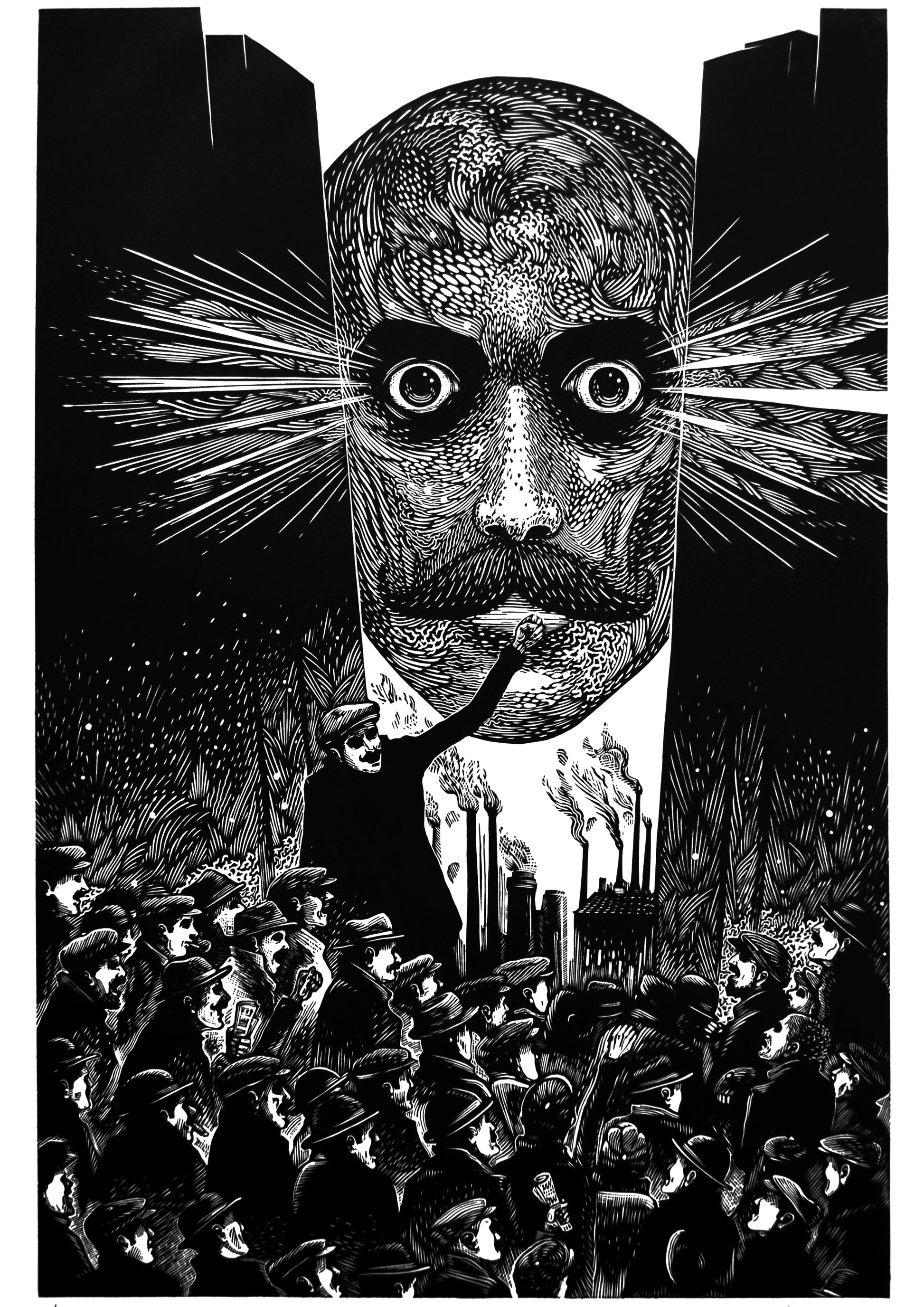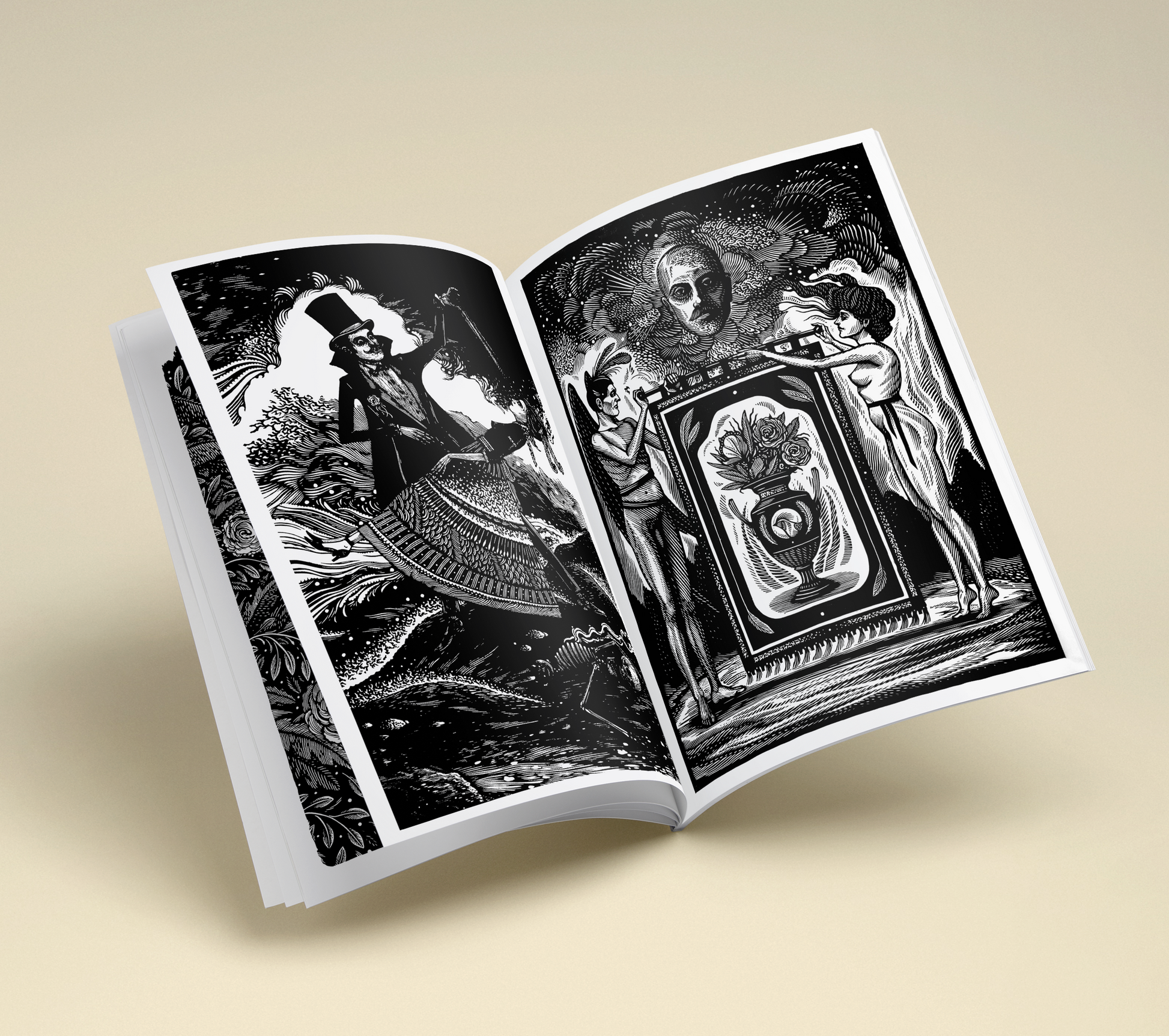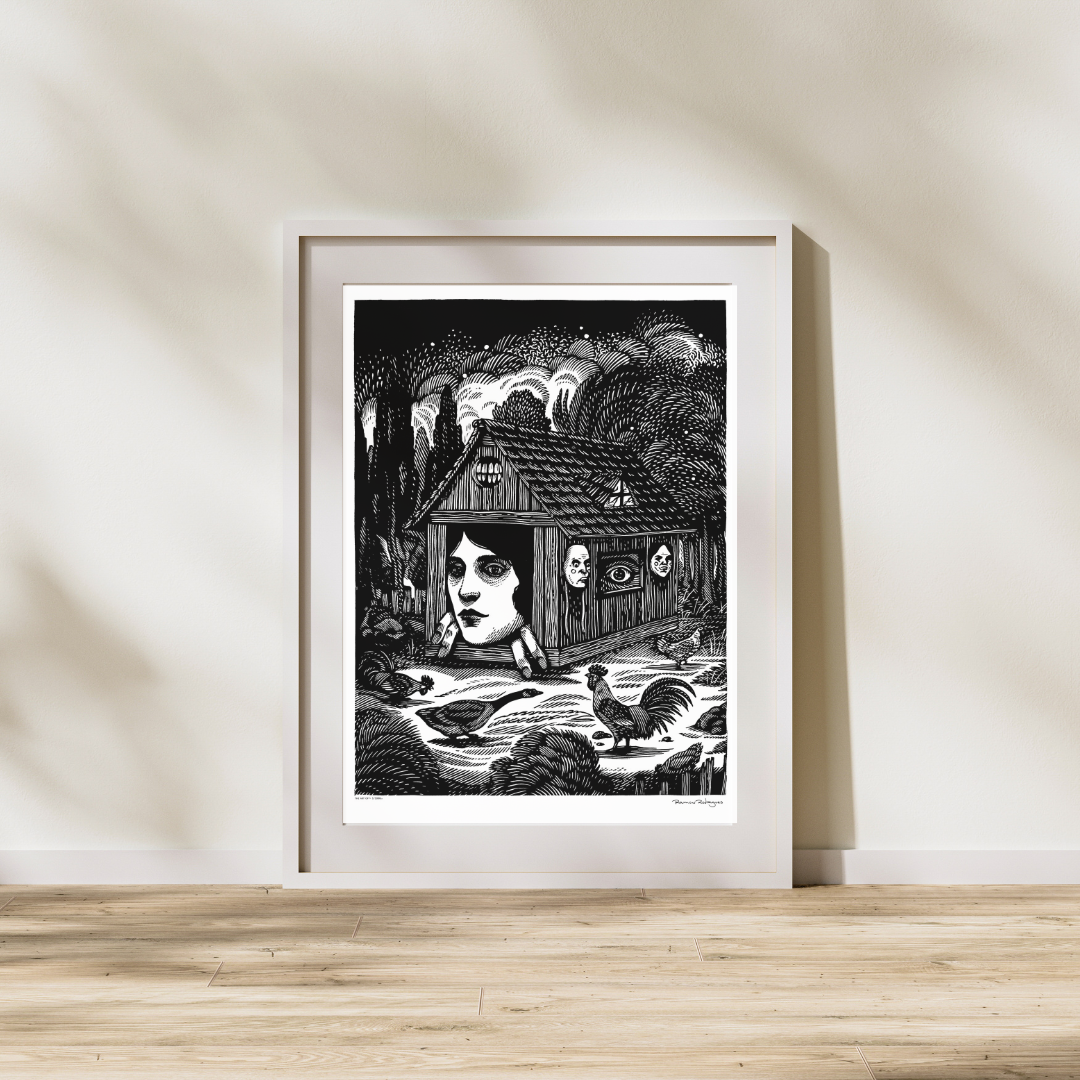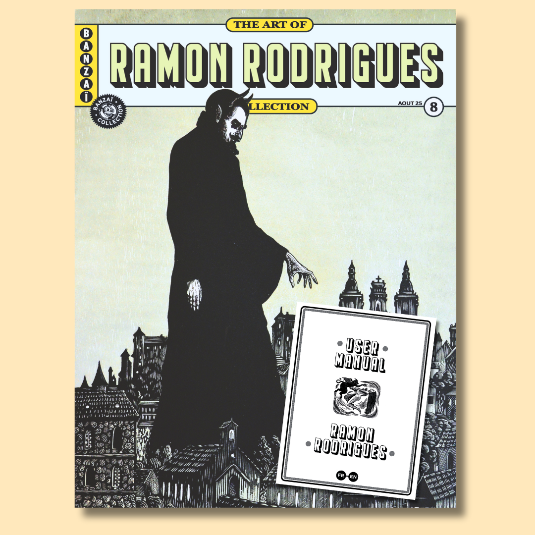 Ramon Rodrigues masters the demanding art of wood engraving like few contemporary artists. Through his compositions, he unfolds a baroque and mystical universe, rich in symbols. Drawing inspiration from both ancient engravings and Latin American popular culture, he revisits the codes of the sacred, the fable, and satire with astonishing precision. A unique body of work, blending artisanal tradition with striking modern visuals.