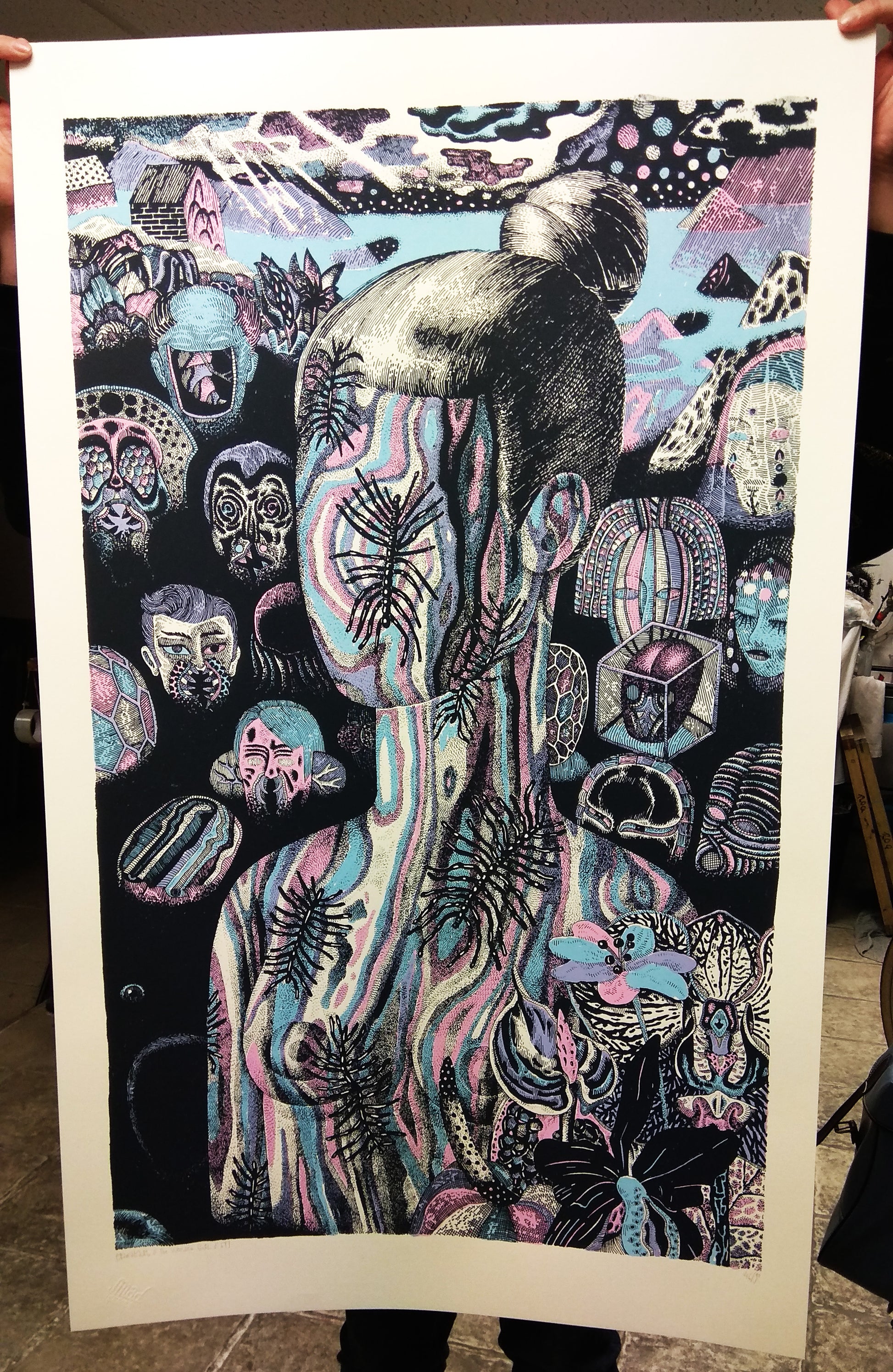 WOODEN GIRL, Handmade screenprint by artist Boris PRAMATAROV