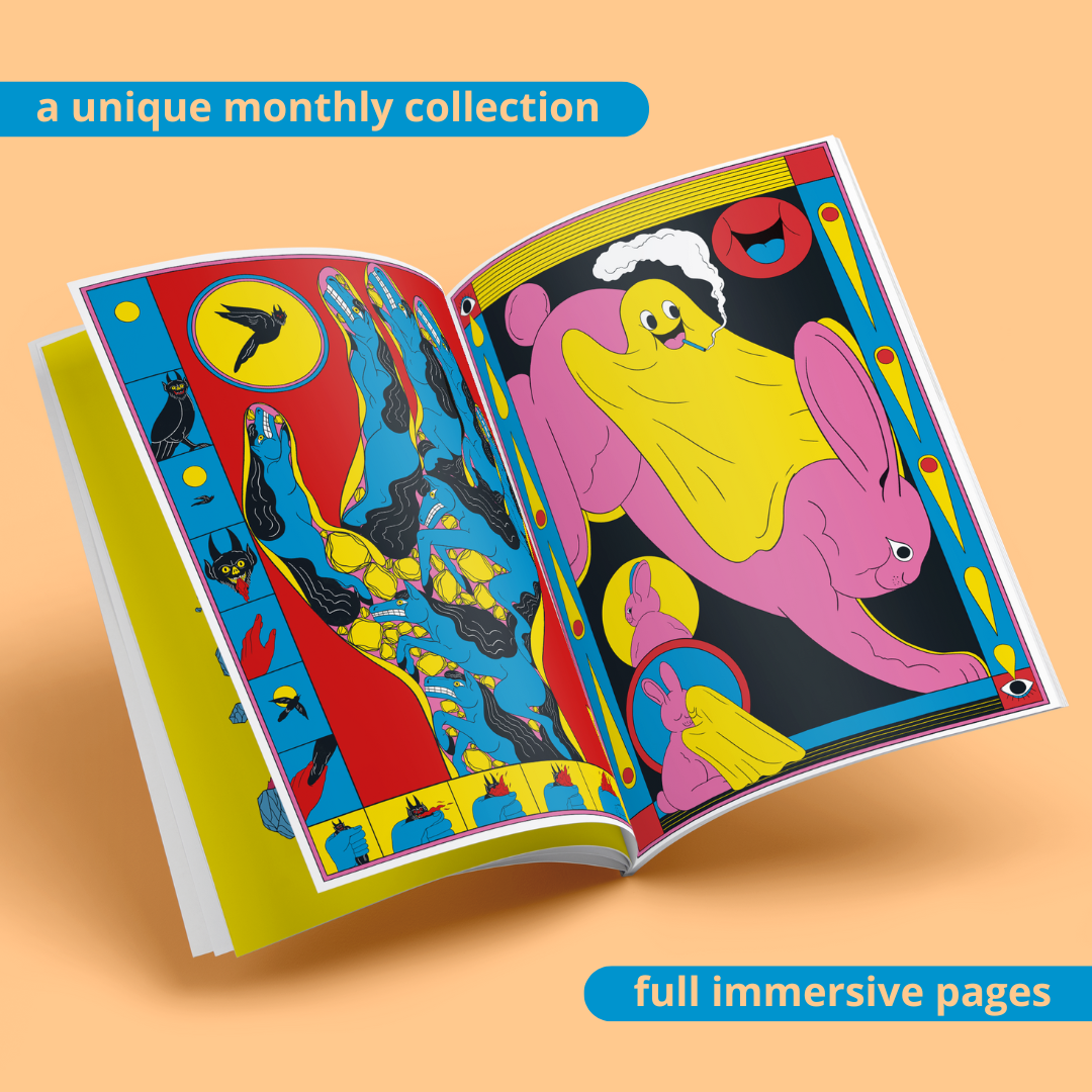 L'Abonnement Annuel PREMIUM inclut : Les 12 numéros en Silver ou Gold + Tirage riso signé et numéroté par Ryan Heshka (limité à 60 exemplaires et exclusivement disponible par ce biais)