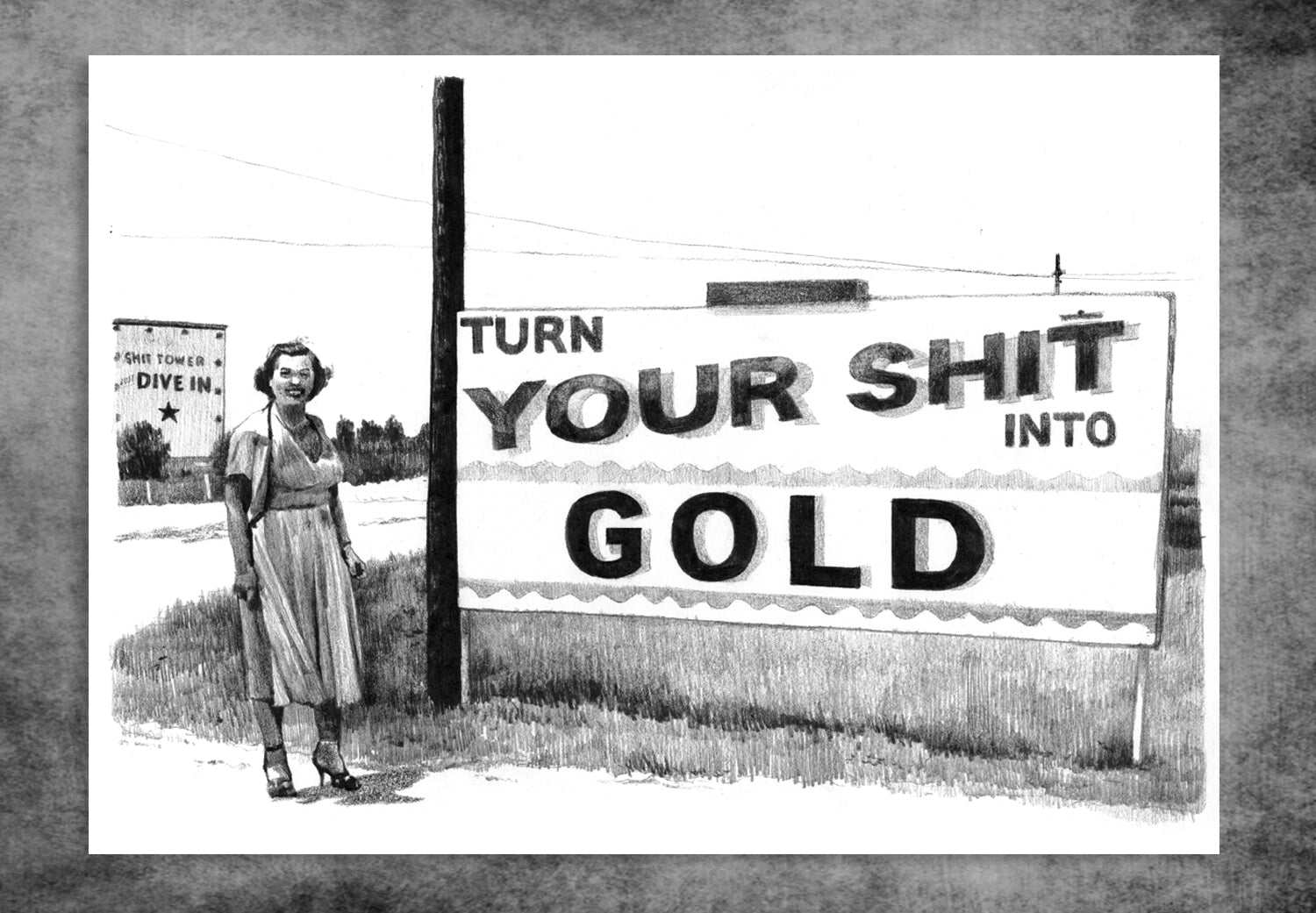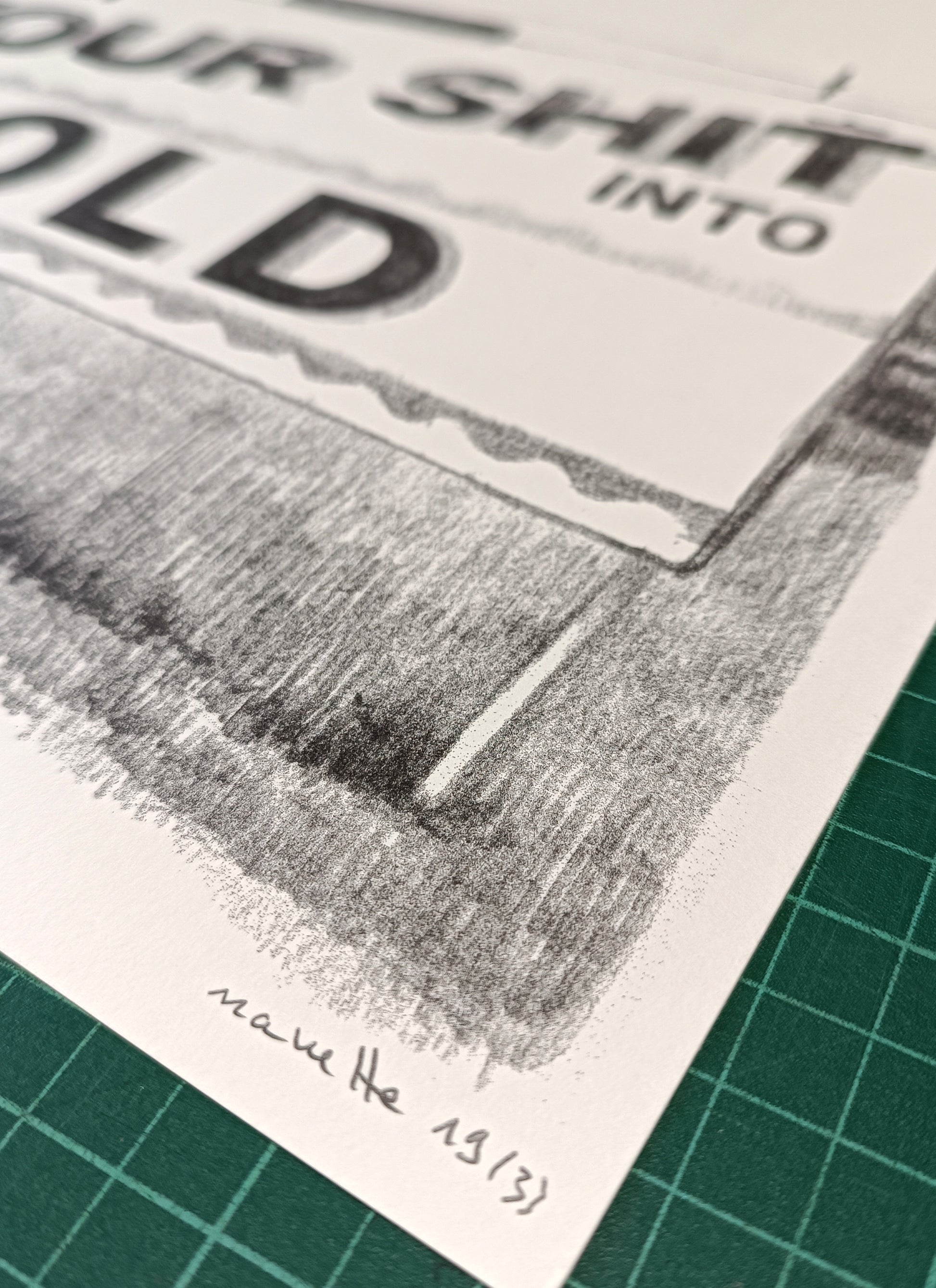 TURN YOUR SHIT INTO GOLD / Risographie de l'artiste Jean-Luc Navette.
